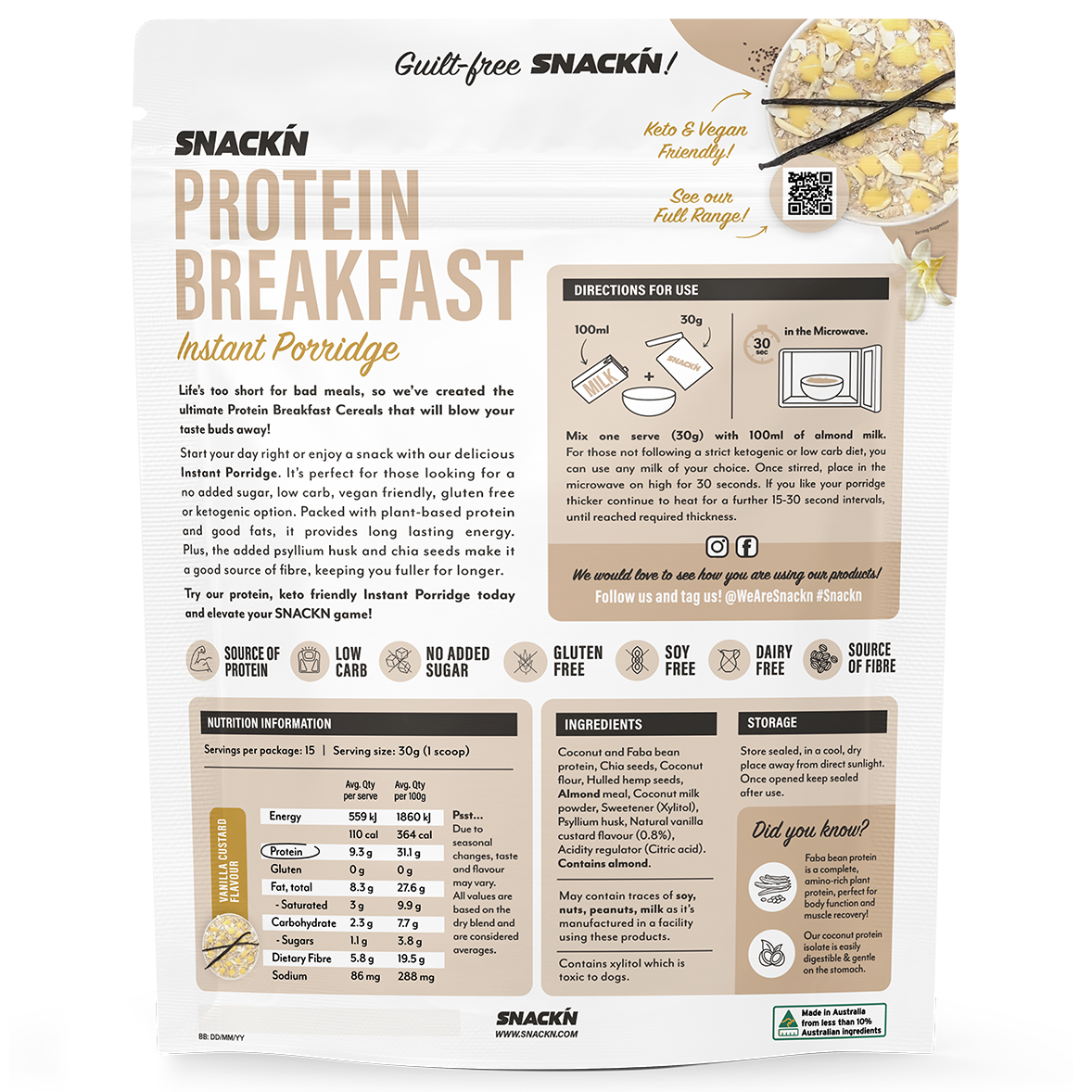 Snackn' Protein Instant Porridge Vanilla Custard Flavour - 450g