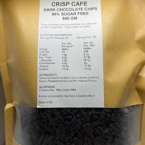So why not take your baking to new heights with CRISP CAFE Chocolate Chips? With their low sugar content and absence of maltitol, they offer a healthier alternative without compromising on taste. Get ready to impress your friends and family with delectable treats that are both delicious and mindful of your dietary needs. Order your bag of CRISP CAFE Chocolate Chips today and experience the joy of guilt-free indulgence.