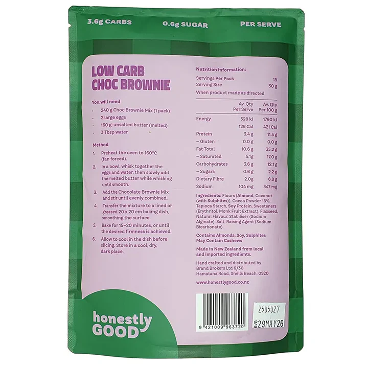 Looking for a rich, chocolatey treat that fits your low-carb lifestyle? Our Honestly Good Low-Carb Chocolate Brownie is a fudgy, feel-good indulgence made right here in New Zealand. Gluten-free, quick to bake, and packed with real cocoa flavour, it’s perfect for anyone after a healthier dessert option without sacrificing taste. Each serve has just 3.6g of carbs and only 0.6g of sugar, making it ideal for those following a low-carb, keto-friendly, gluten-free, or diabetic-conscious diet. Plus, it’s super easy to whip up – perfect for busy days when you’re craving something wholesome and satisfying.