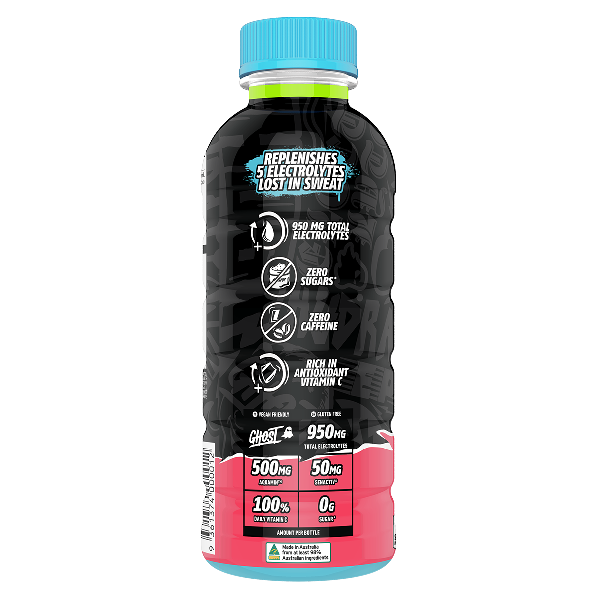 Ghost Hydration Drink is vegan-friendly, gluten-free, and naturally flavoured. It's the ultimate sugar-free electrolyte boost to help you perform at your best. The drink is loaded with key electrolytes and performance-supporting ingredients to keep you hydrated, energised, and ready to go.