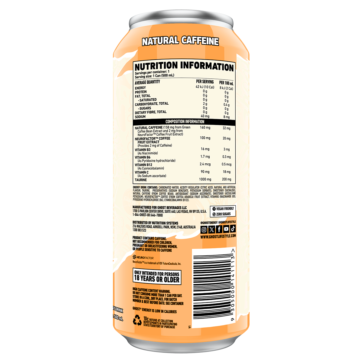 Enjoy the perfect energy and focus combo with the new Ghost Lifestyle Energy RTD! Take legendary energy to a whole new level with this new, fully disclosed label and epic energy drink. This ready-to-drink can of energy contains no sugar, no artificial colours or BS. You’ll know exactly what’s in each can of Energy RTD.