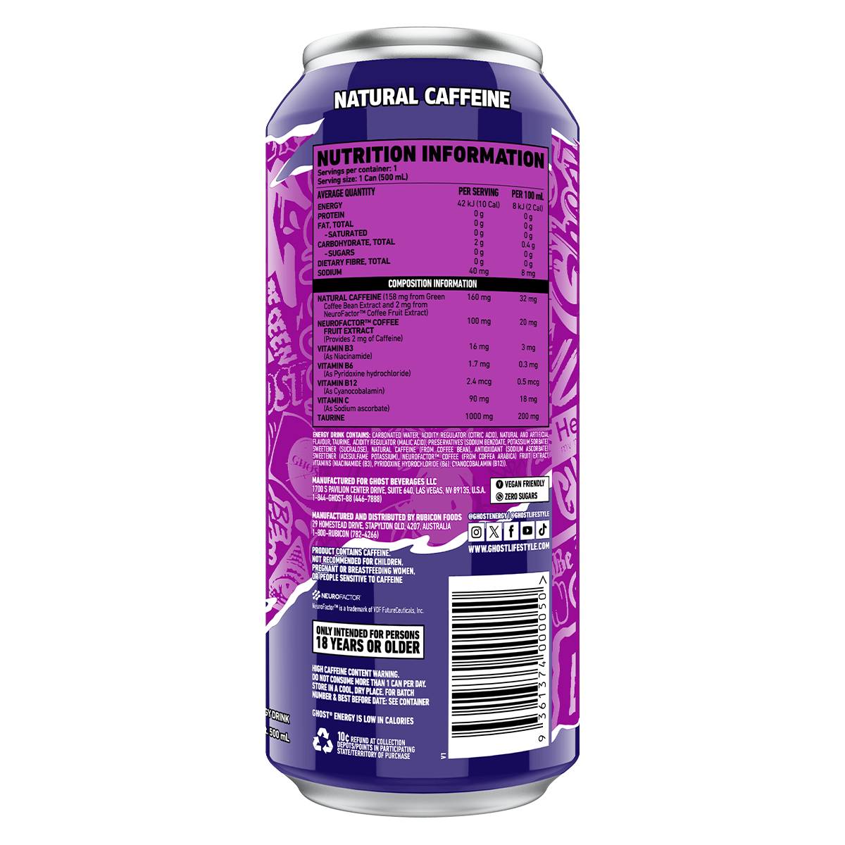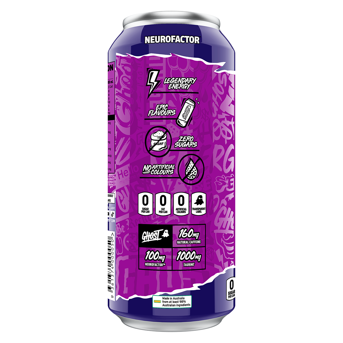Enjoy the perfect energy and focus combo with the new Ghost Lifestyle Energy RTD! Take legendary energy to a whole new level with this new, fully disclosed label and epic energy drink. This ready-to-drink can of energy contains no sugar, no artificial colours or BS. You’ll know exactly what’s in each can of Energy RTD.