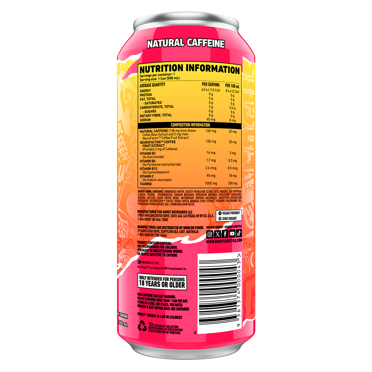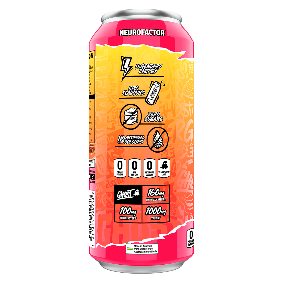 Enjoy the perfect energy and focus combo with the new Ghost Lifestyle Energy RTD! Take legendary energy to a whole new level with this new, fully disclosed label and epic energy drink. This ready-to-drink can of energy contains no sugar, no artificial colours or BS. You’ll know exactly what’s in each can of Energy RTD.