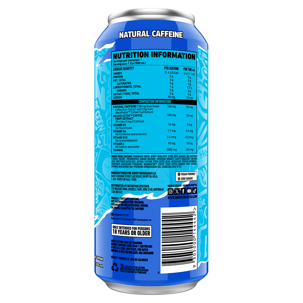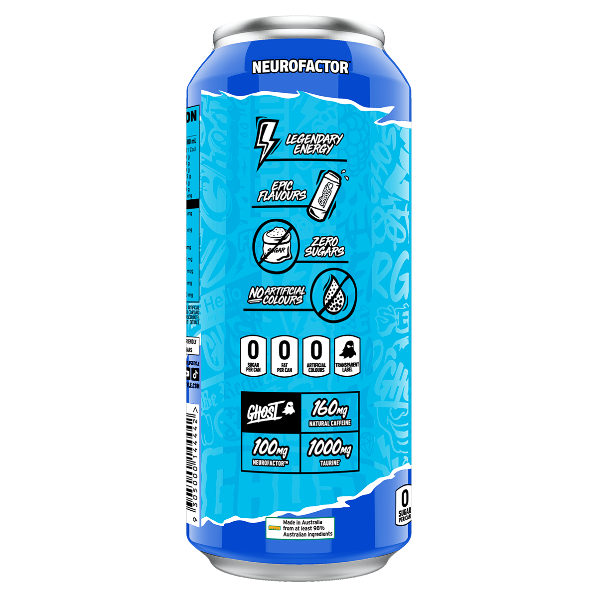 Enjoy the perfect energy and focus combo with the new Ghost Lifestyle Energy RTD! Take legendary energy to a whole new level with this new, fully disclosed label and epic energy drink. This ready-to-drink can of energy contains no sugar, no artificial colours or BS. You’ll know exactly what’s in each can of Energy RTD.