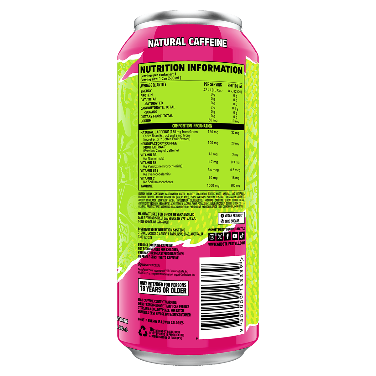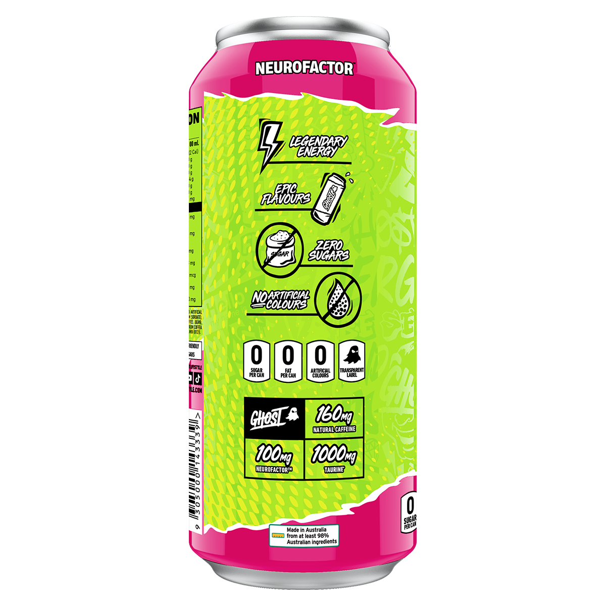 Enjoy the perfect energy and focus combo with the new Ghost Lifestyle Energy RTD! Take legendary energy to a whole new level with this new, fully disclosed label and epic energy drink. This ready-to-drink can of energy contains no sugar, no artificial colours or BS. You’ll know exactly what’s in each can of Energy RTD.