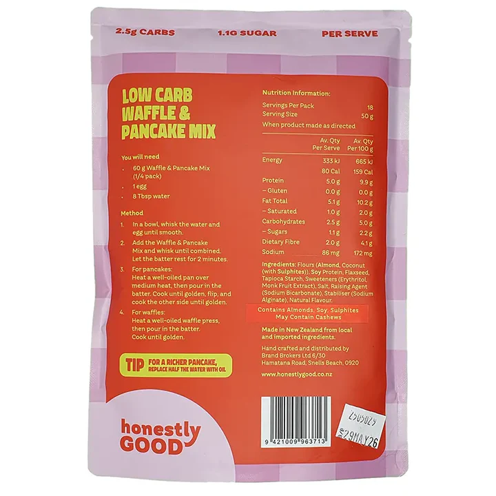 Looking for a better-for-you breakfast that doesn’t compromise on taste? Our Honestly Good Low-Carb Waffle & Pancake Mix is a light, fluffy, and delicious way to start your day – made right here in New Zealand. Gluten-free, quick to make, and full of comforting, homestyle flavour, it’s perfect for breakfast lovers who want to keep it low-carb. Each serve contains just 2.5g of carbs and only 1.1g of sugar, making it ideal for those following a low-carb, keto-friendly, gluten-free, or diabetic-conscious lifestyle. Just add your favourite toppings and enjoy a nourishing, guilt-free morning.
