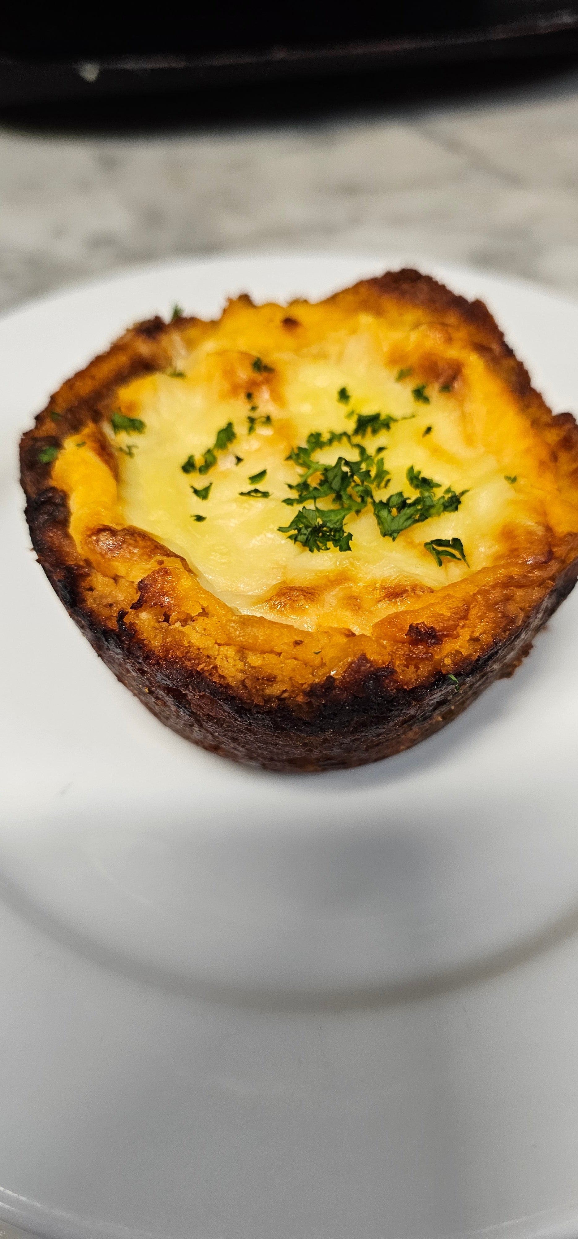 Filling is cooked from scratch and these pies are topped with Swede Mash.