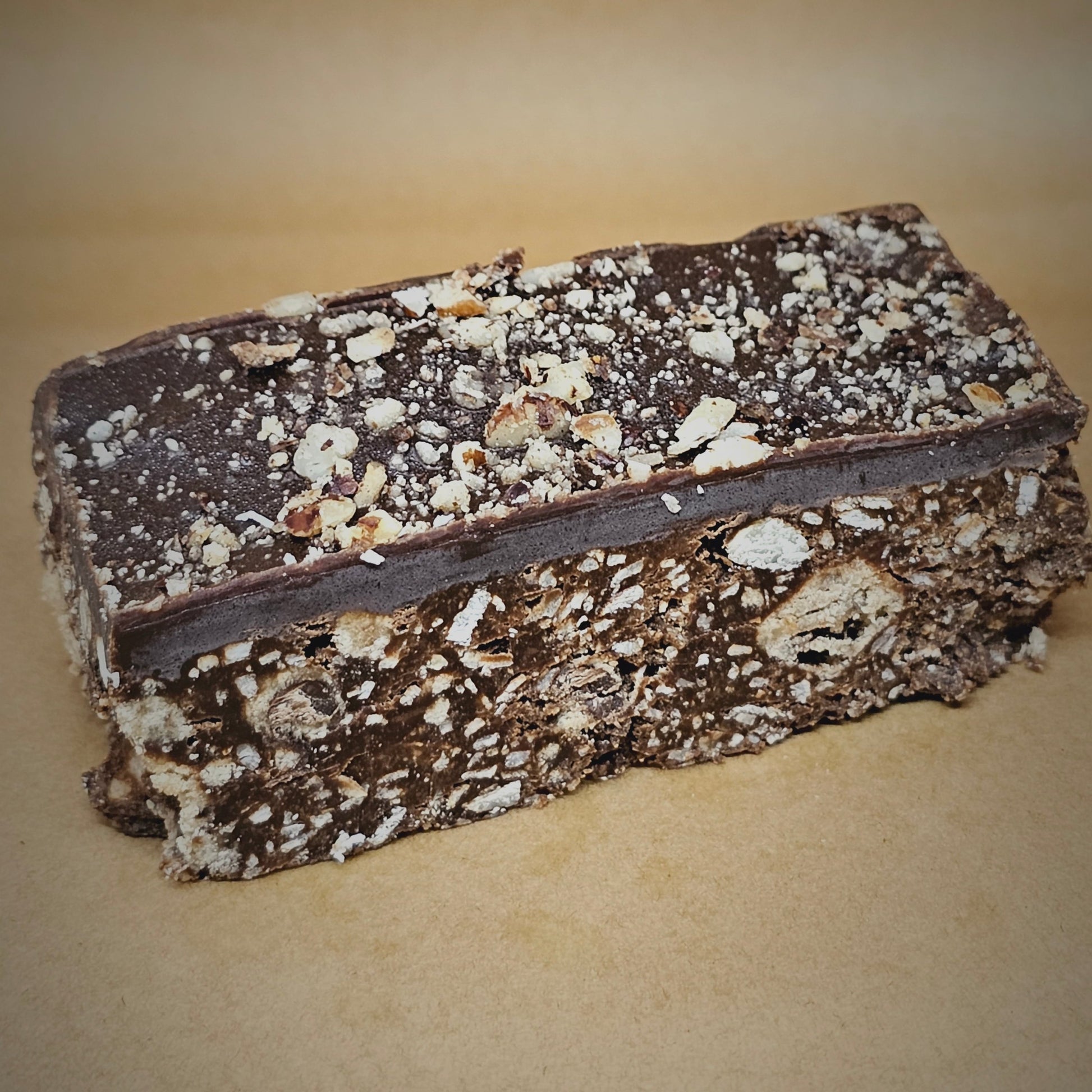 Tastes like a traditional fudge slice without the guilt and this one is chocolate orange flavour with hazelnuts.