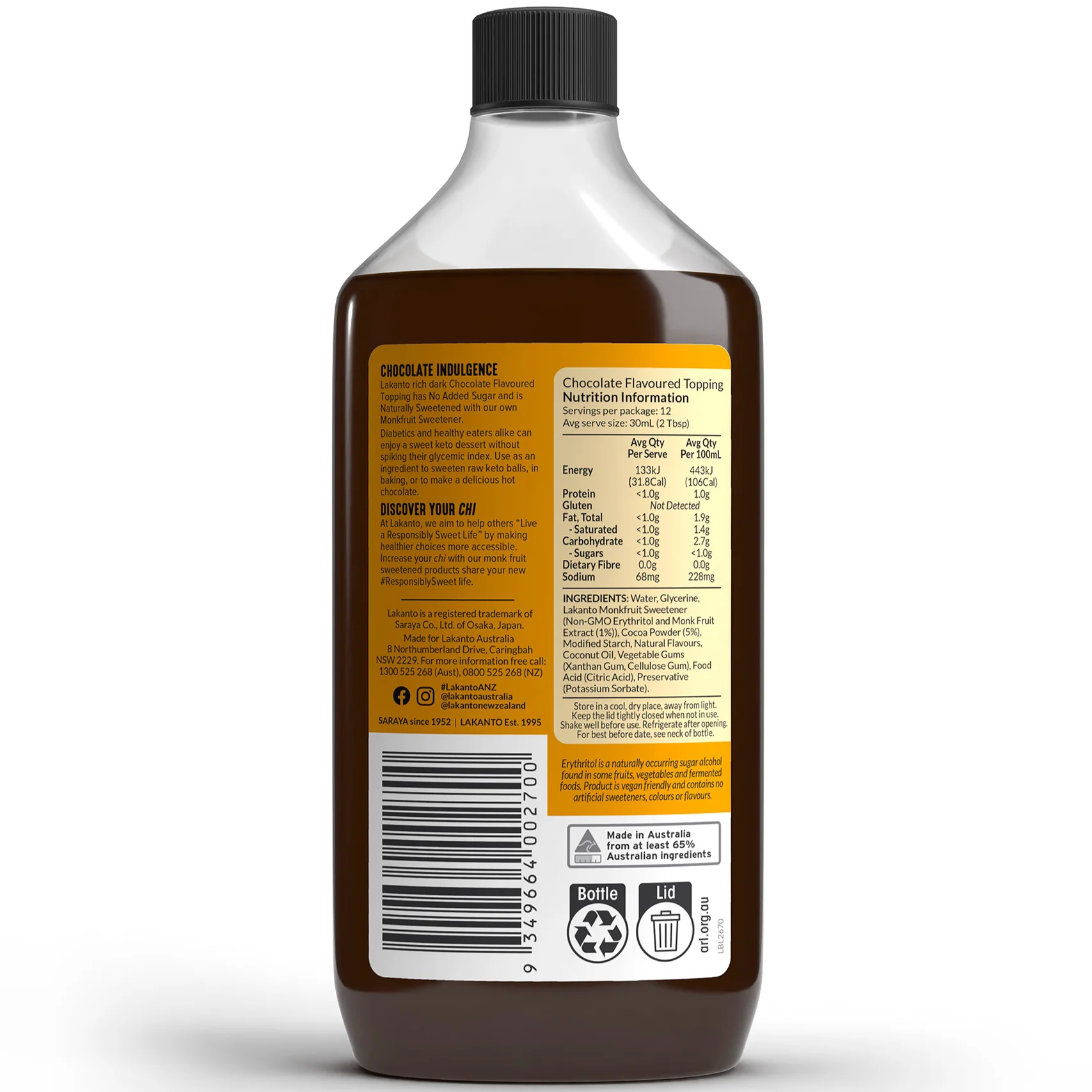 - 100% NATURALLY SWEETENED Chocolate Topping replacement with zero net carbs and only 31 calories per 30mL serve.