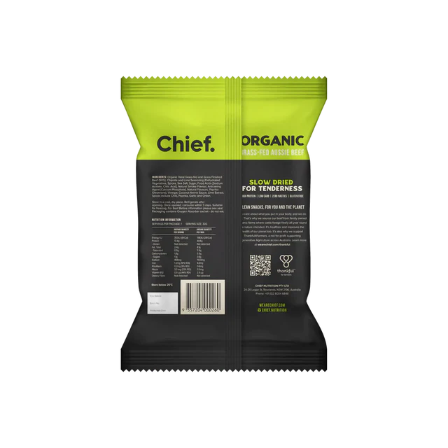 ORGANIC GRASS-FED BILTONG CHIPOTLE & LIME 30G