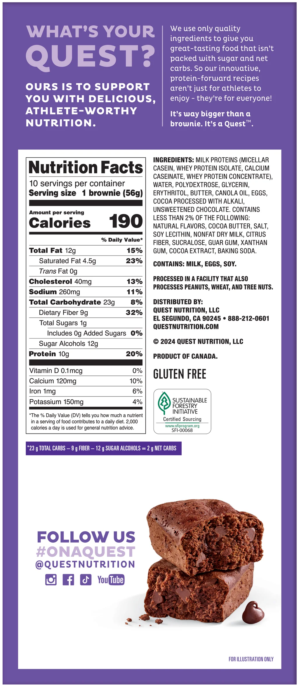 - HACK YOUR SNACK. Quest Bake Shop Brownies have the satisfying chocolatey taste you love with 1g of sugar*.