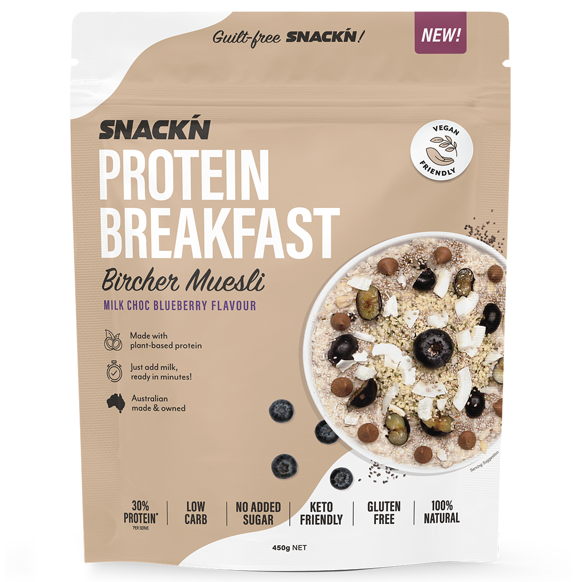 Snackn' Protein Breakfast Bircher Muesli Milk Choc Blueberry Flavour - 450g